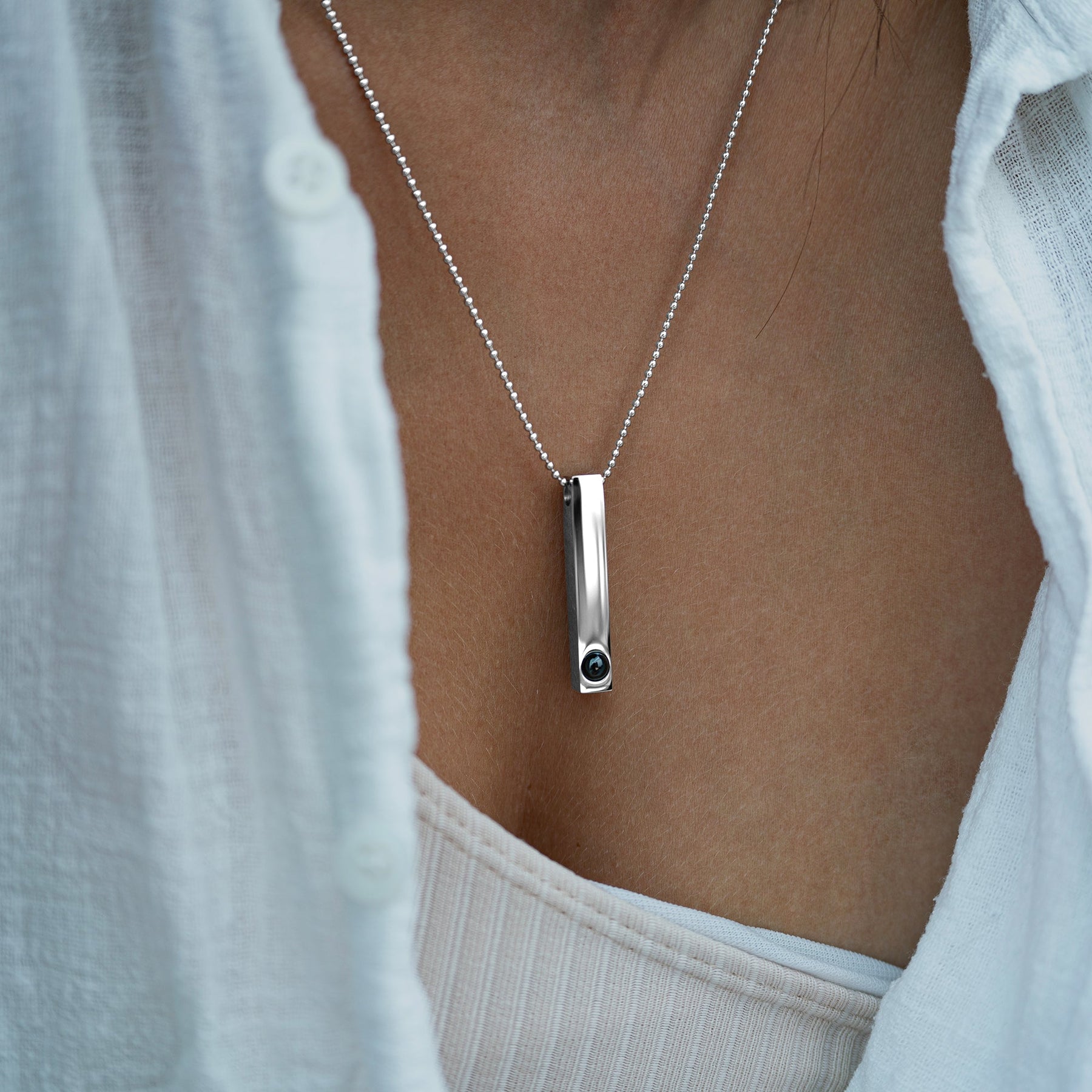 Surprinde clipa – cu colierul foto în formă de bară vei avea mereu cele mai frumoase amintiri exact acolo unde trebuie să fie: aproape de inima ta. Un companion fidel al poveștilor și experiențelor tale personale.